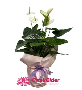 🎁 Hediye Olarak Popülerliği: “Beyaz çiçekli hediye”, “minimalist saksı çiçeği” ve “duygusal bitki hediyesi” gibi aramalarda sıkça karşılaşılan Beyaz Antoryum, uzun ömürlü yapısıyla kalıcı bir mutluluk sunar. Çiçek Gider’in pastel pembe ambalajı ve mor kurdele detayı, hediyenizi daha da özel kılar.