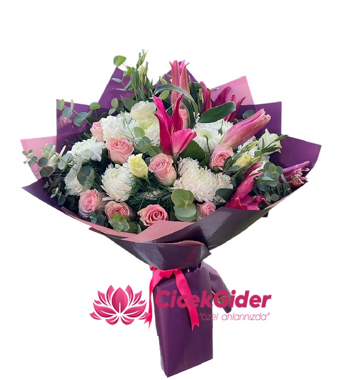 Sevdiklerinize sıradan bir hediye değil, unutulmaz bir anı bırakmak ister misiniz? Çiçek Gider özel tasarımı olan Göz Kamaştıran Zarafet Buketi, derin morun asaleti ile pembe güllerin zarafetini bir araya getirerek duygularınıza tercüman oluyor. Mersin’in taze çiçekleriyle hazırlanan bu özel aranjman, zarafeti ihtişamla harmanlayanlar için tasarlandı.