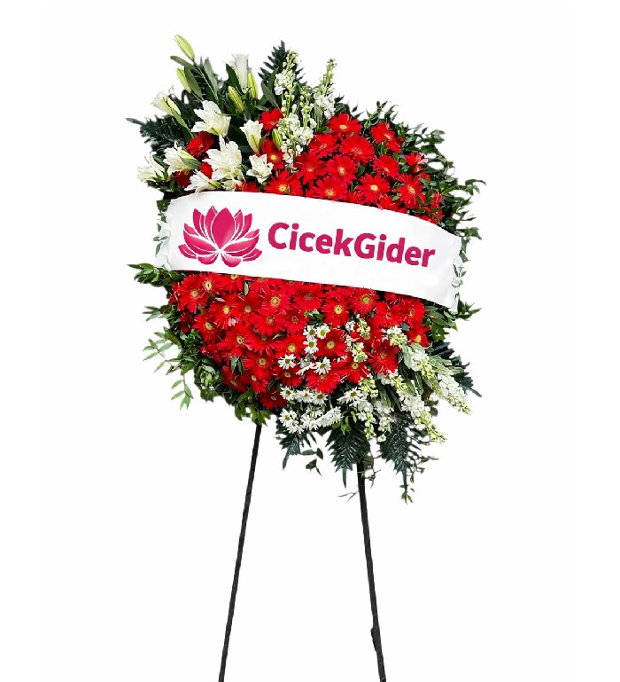 Kırmızı Beyaz Ayaklı Taziye Çelengi, kayıplar karşısında duyulan saygıyı, sevgiyi ve başsağlığını zarif bir şekilde yansıtan özel bir aranjmandır.