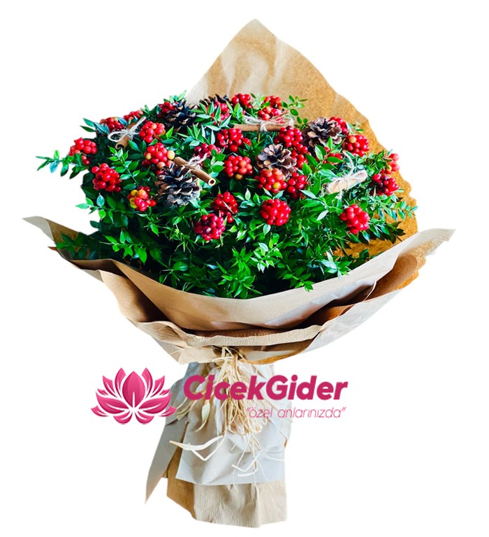 Naturel ambalajında, tarçının huzur veren kokusu ve kozalakların estetiğiyle bezenmiş kucak dolusu kokina buketi, farklı tasarımıyla sevdiklerinize unutulmaz bir mutluluk sunar. Yılbaşı, doğum günleri, yeni iş kutlamaları ya da özel günlerde zarif bir jest arıyorsanız, bu buket tam size göre!
