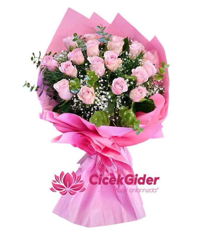 20 Adet Seçkin Pembe Gül: Her biri en taze haliyle seçilmiş, sevginin ve zarafetin simgesi olan 20 adet birinci sınıf gül.