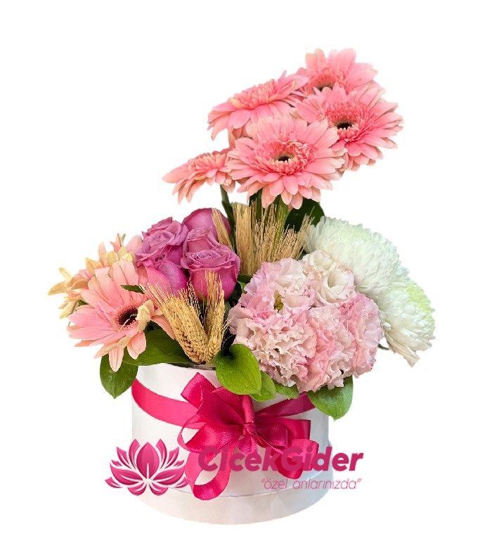 "Özel anlarınızda" sloganıyla yola çıkan Çiçek Gider, en taze çiçekleri en şık sunumlarla kapınıza getiriyor. Şık beyaz silindir kutusu ve pembe saten kurdelesiyle hazırlanan bu özel tasarım, teslim alındığı andan itibaren mekanın havasını değiştirir.