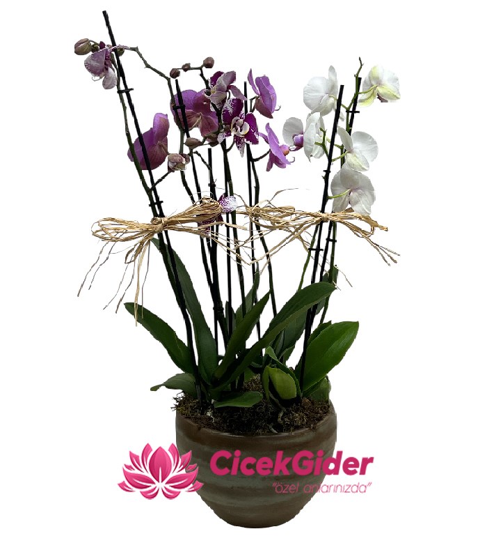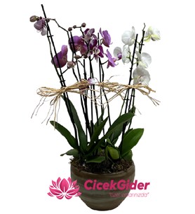 Doğanın zarafetini ve rengin enerjisini bir araya getiren Renkler Cümbüşü Orkideler, bulunduğu her ortama huzur, estetik ve asalet katar. Morun tutkusuyla beyazın saflığını buluşturan bu özel orkide tasarımı, modern çizgilere sahip seramik saksısında göz alıcı bir şıklık sunar.