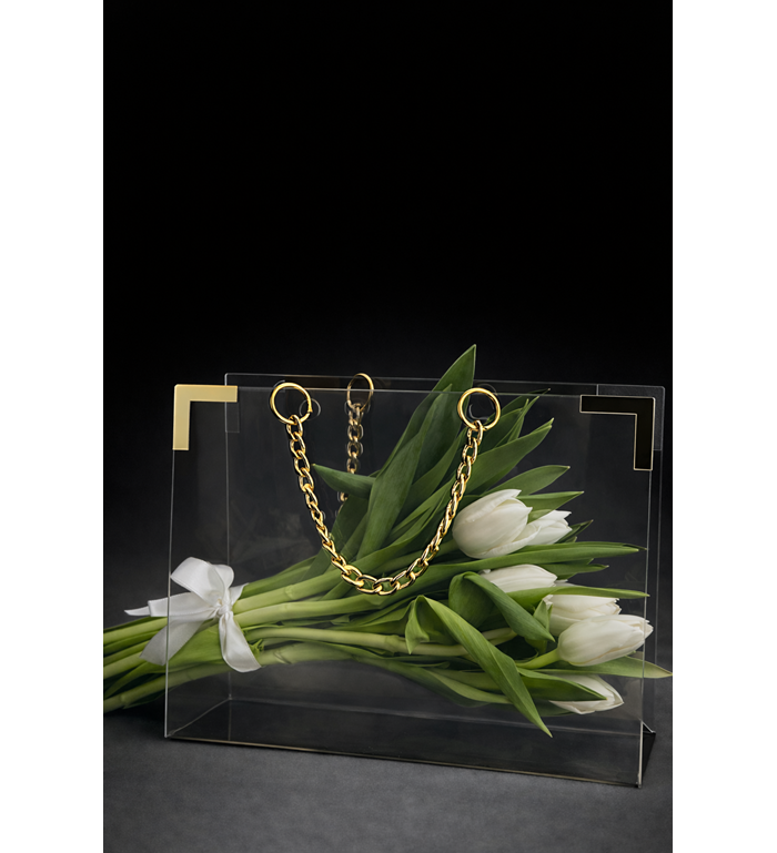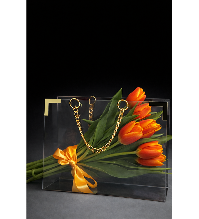 Zarafetin ve modern tasarımın buluştuğu Şeffaf Çantada Premium Pembe Laleler, sevdiklerinize unutulmaz bir sürpriz yapmak için özel olarak hazırlanmış şık bir çiçek aranjmanıdır. Tazeliği ve canlı renkleriyle dikkat çeken pembe laleler, sevgi, zarafet ve mutluluğun en güzel sembollerinden biridir. Şeffaf akrilik çanta tasarımı ve altın zincir detaylarıyla hazırlanan bu özel aranjman, klasik çiçek buketlerinden farklı olarak hem modern hem de lüks bir görünüm sunar.