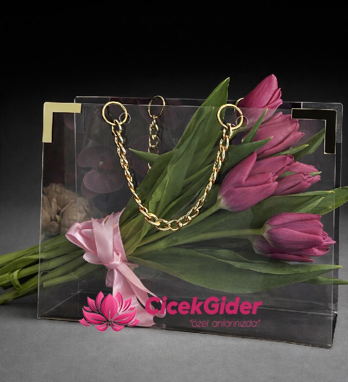 Çiçek Gider kalitesiyle hazırlanan bu özel tasarım, doğum günü çiçekleri, sevgiliye çiçek, yıldönümü çiçekleri, kadınlar günü çiçekleri ve tüm özel günler için harika bir hediye alternatifidir. Özenle seçilmiş taze laleler zarif bir kurdele ile tamamlanarak şık bir sunum haline getirilir. Modern şeffaf çanta tasarımı sayesinde çiçekler hem estetik bir görünüm kazanır hem de dekoratif bir hediye olarak uzun süre dikkat çeker.