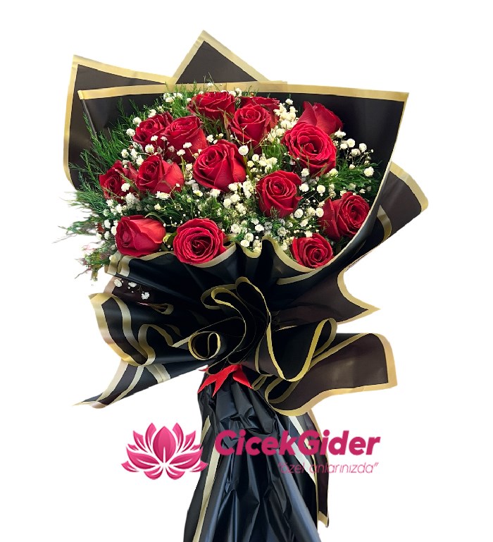 Siyah Asalet 15 Kırmızı Gül Buketi – Çiçek Gider