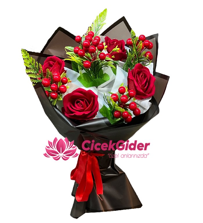 Çiçek Gider'in en romantik ve en kalıcı tasarımlarından biriyle tanışın: Yapay Kırmızı Gül ve Kokina Buketi!
